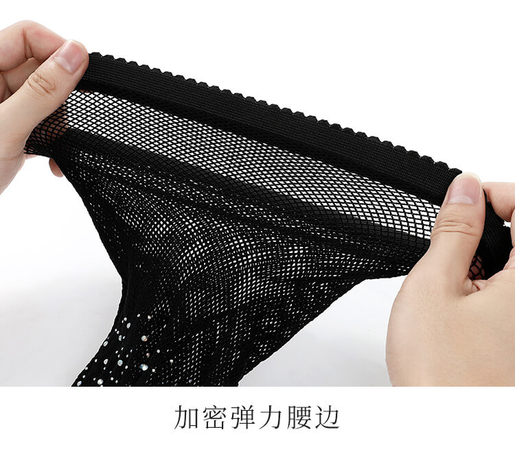 FEE ET MOI Bling Fishnet Hollow Waist High Stockings (Black)