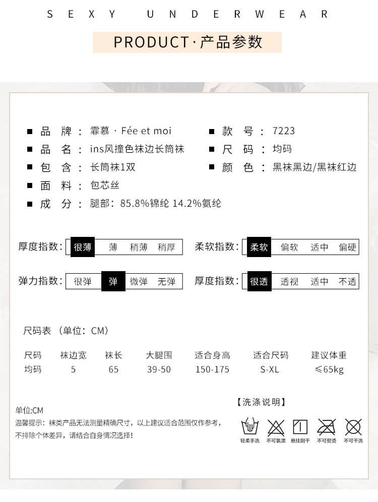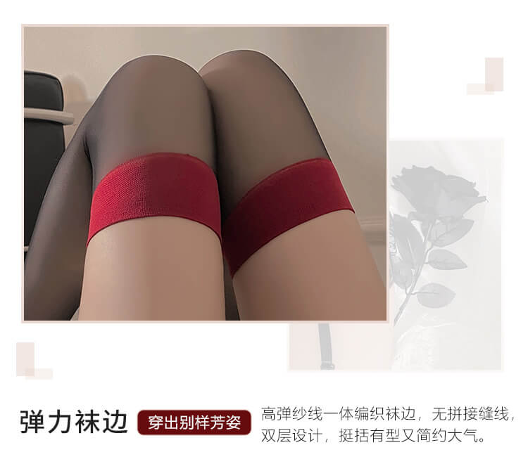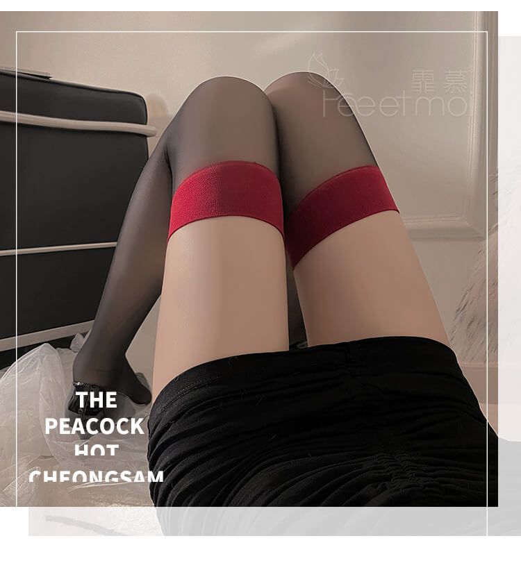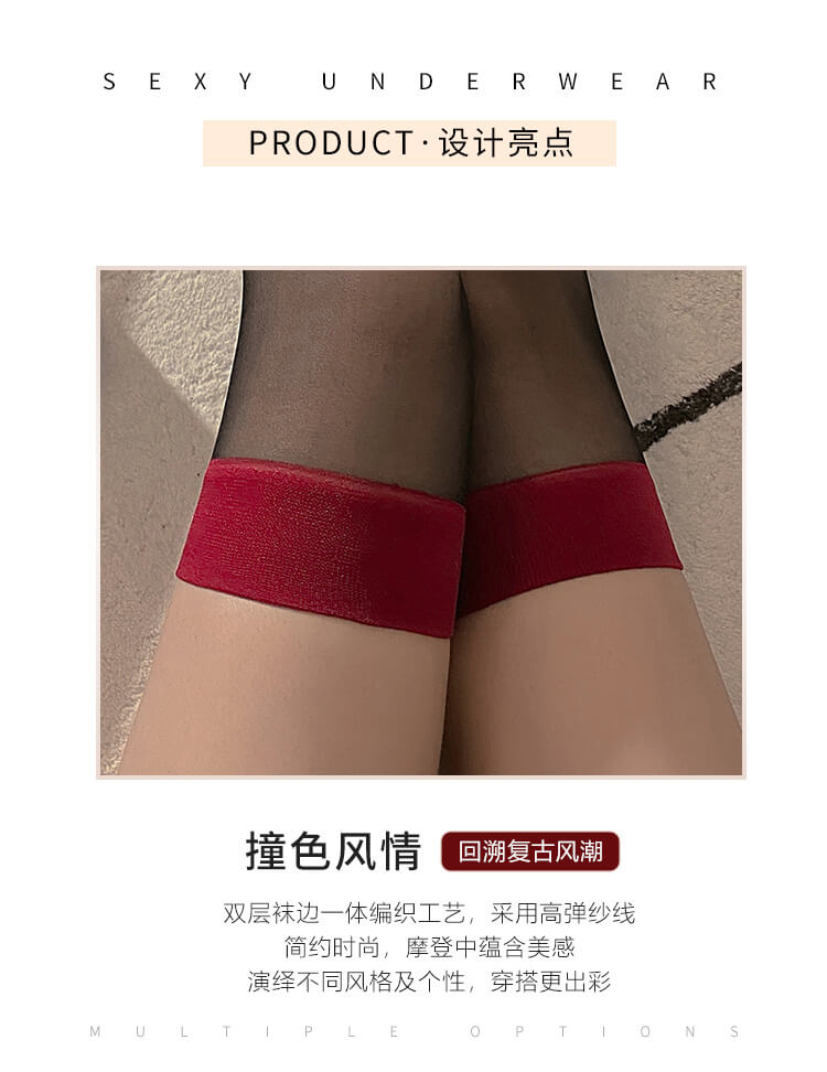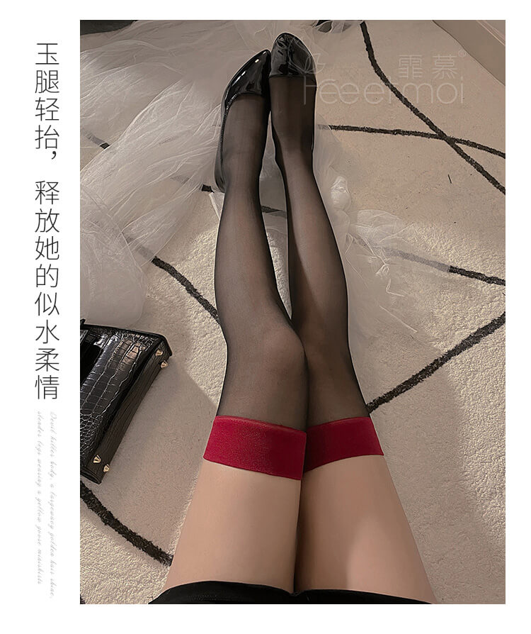 FEE ET MOI Ins Style Thigh High Stockings (Black - Red)