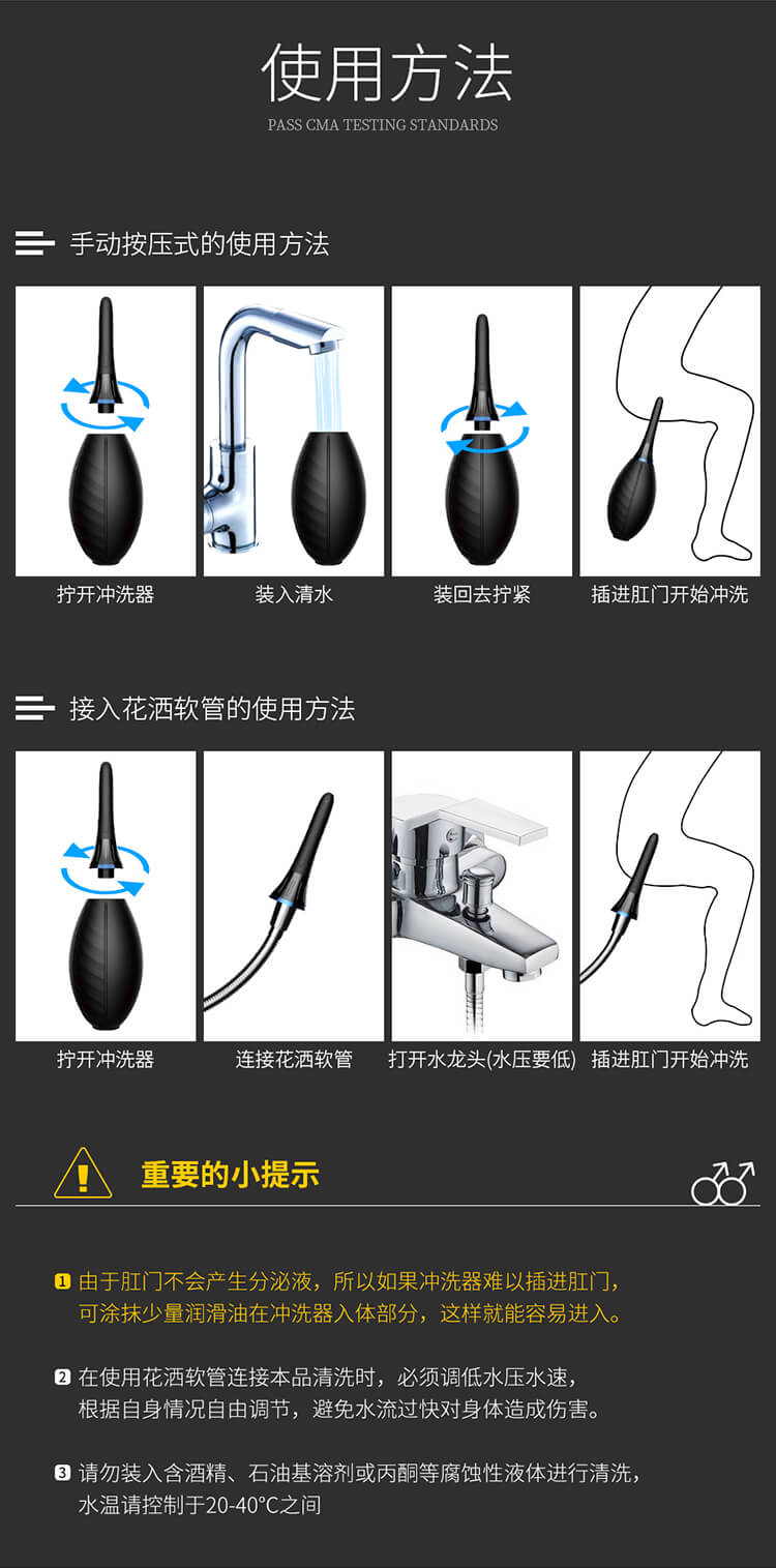 | * | The Simple and Ergonomic Design provides a perfect and non-slip grasp, our clyster springe bulb is connected to the nozzle syringe featuring a leak-proof design which carries the enema liquid to the colon. The enema bulb has a soft nozzle,smooth and easy to plug-in, apply to most lubricants for anal and vaginal cleansing. Give you a healthful cleansing experience. Enema bulb helping relieve constipation and fecal impaction and cleanse the bowel, keep personal health. |